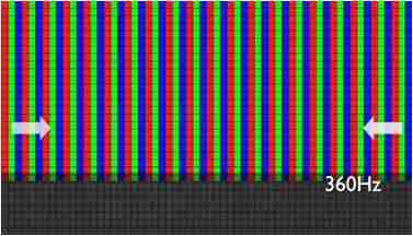 传统液晶驱动是从左到右单向进行,,在画面更新速度愈来越愈快的情况下,,位于驱动线路末端的右下角区域,,,,画素的闸极来不及在短时间内获得足够电压,,无法显示出正确的颜色资讯。。。 |